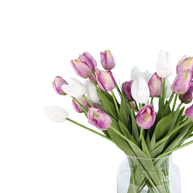 Tulip Pink Silk Flower Arrangement in Glass Vase