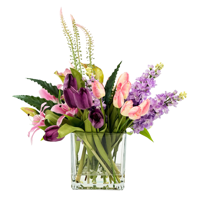 Mix Arrangement Pink Snapdragon Purple Tulip Arum Lily Rose Tiger Lily