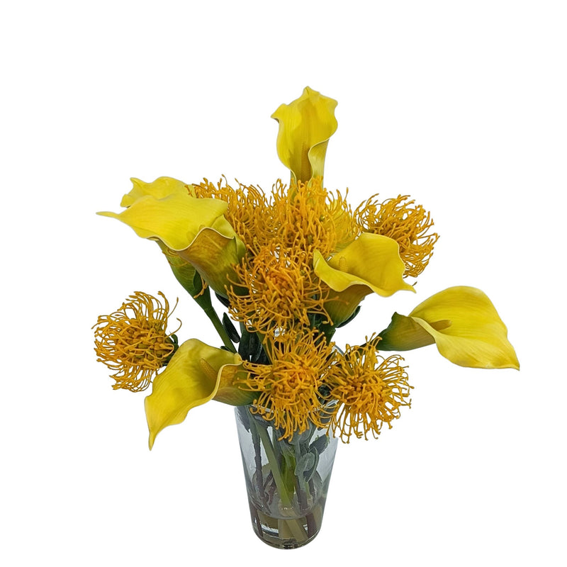 Mix Arum Lily Pincushion Arrangement in Tapered Glass Vase