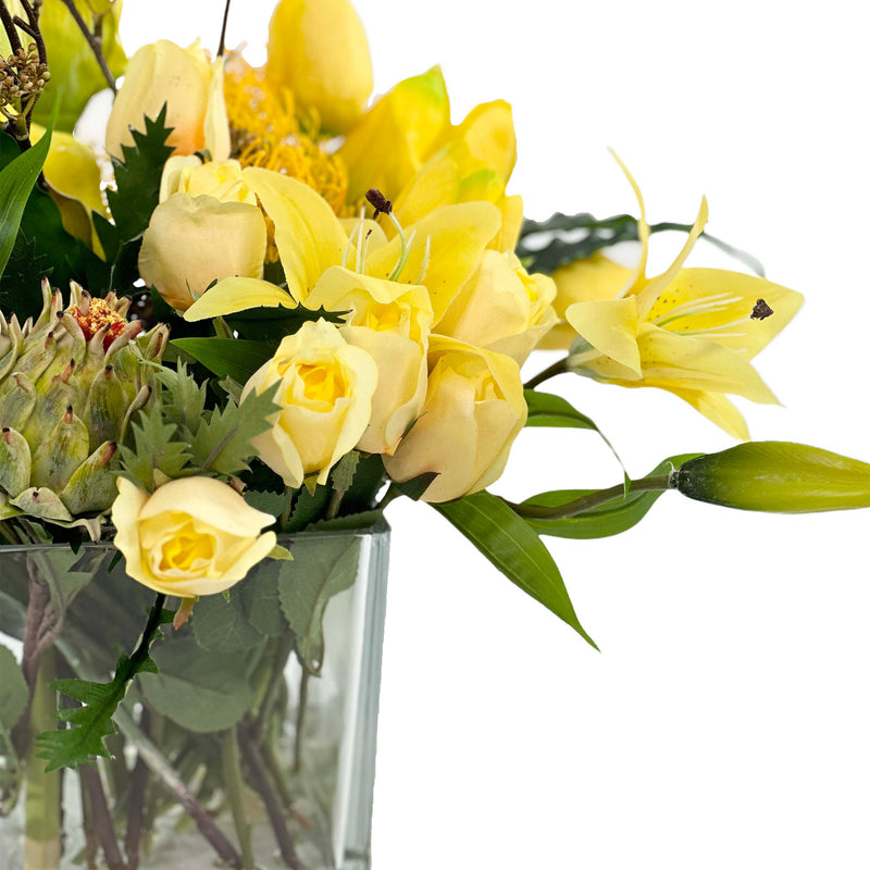 Mix Silk Flower Arrangement Rose Protea In Square Vase