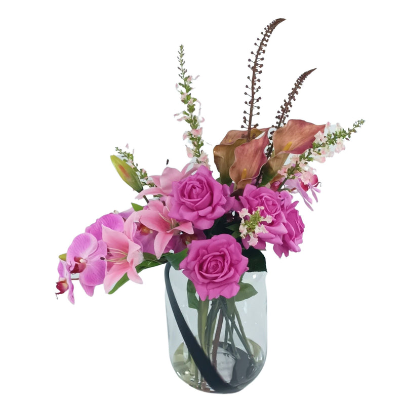 Orchid Pink Arrangement in Large Bubble Glass Vase