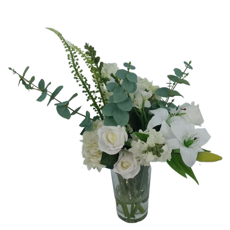 The lifelike artificial flowers are lovingly arranged into breath-taking arrangements that add a beautiful ambience to your home or business.