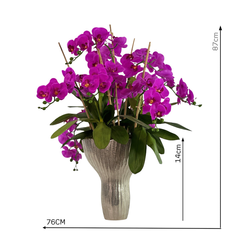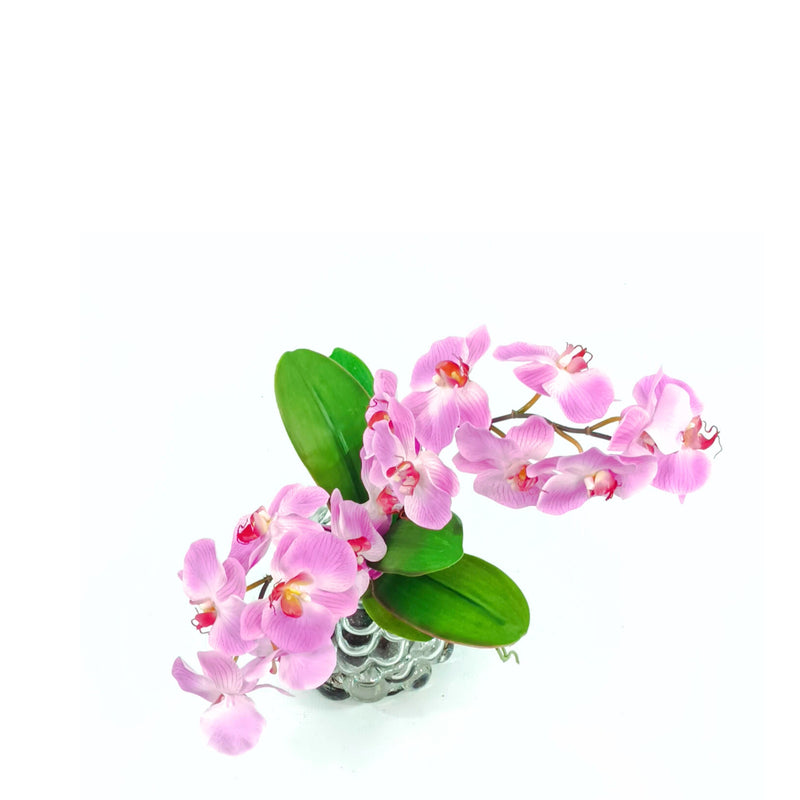 Phalaenopsis Orchid Fushia in Silver Pod Vase