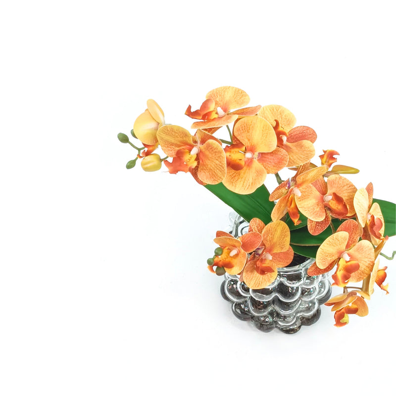 Orchid Orange 72cm Arrangement in Small Bubble Glass Vase