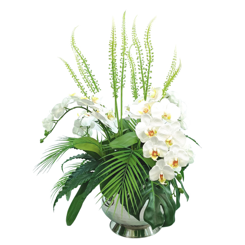 Phalaenopsis Orchid Arrangement White in Large Silver Tin