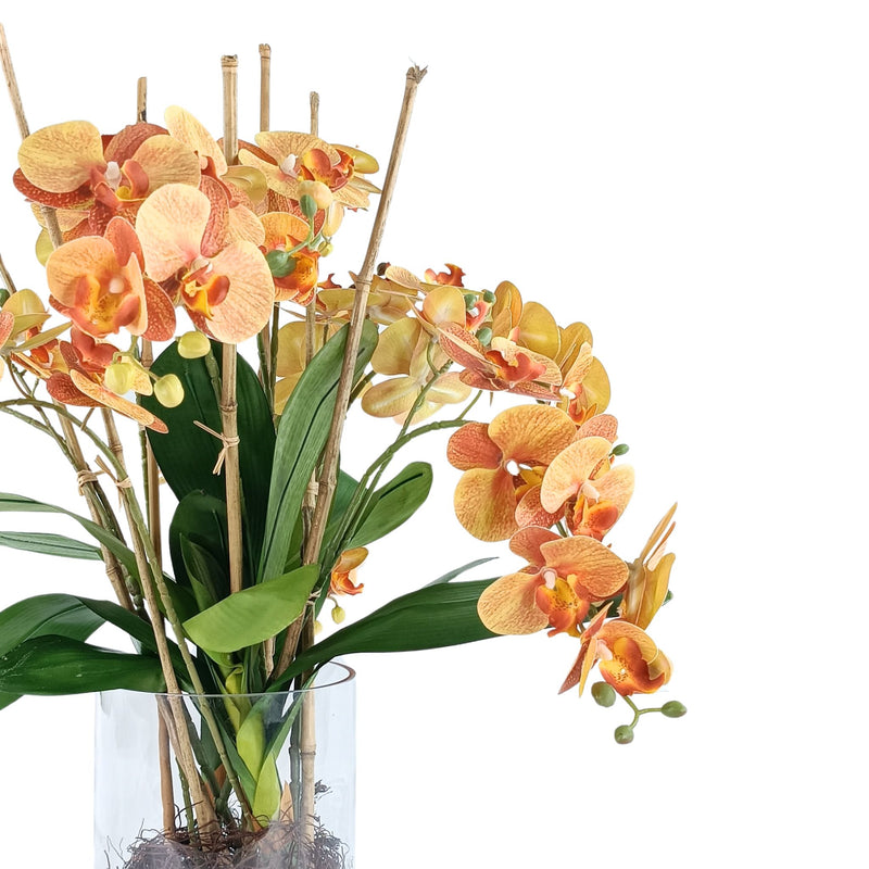 Phalaenopsis Orchid Orange in Glass Cylinder Vase