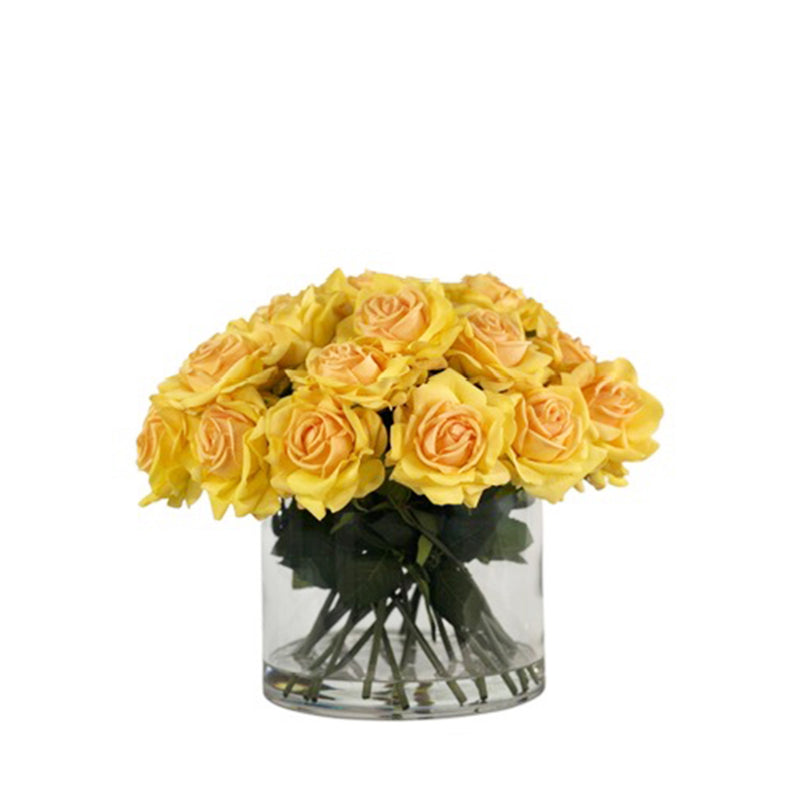 Open Rose Yellow Arrangement in Cylinder Glass Vase
