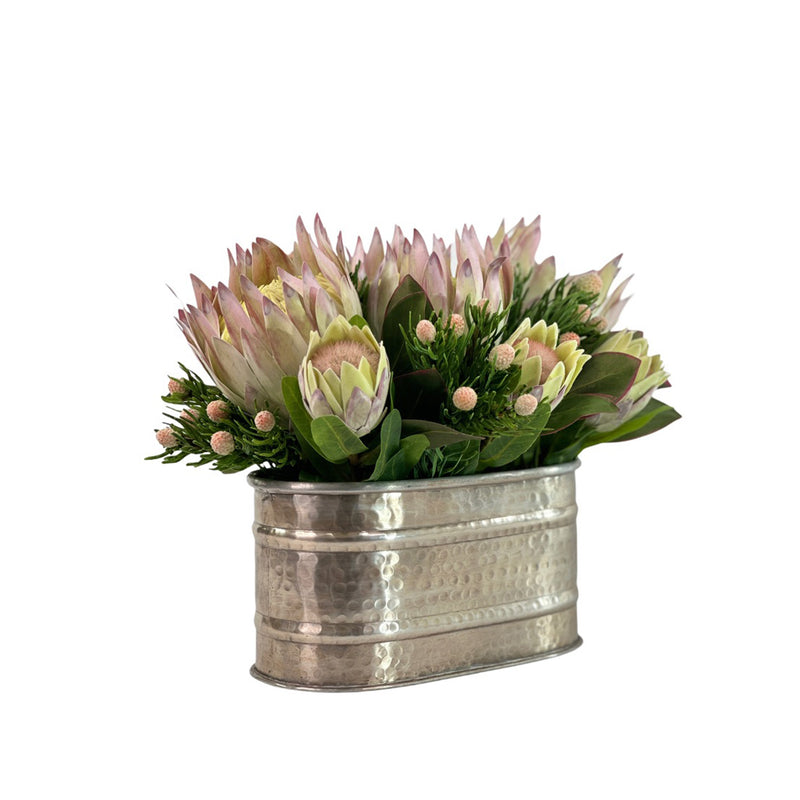 Proteas Eucalyptus Arrangement in Shiny Vase