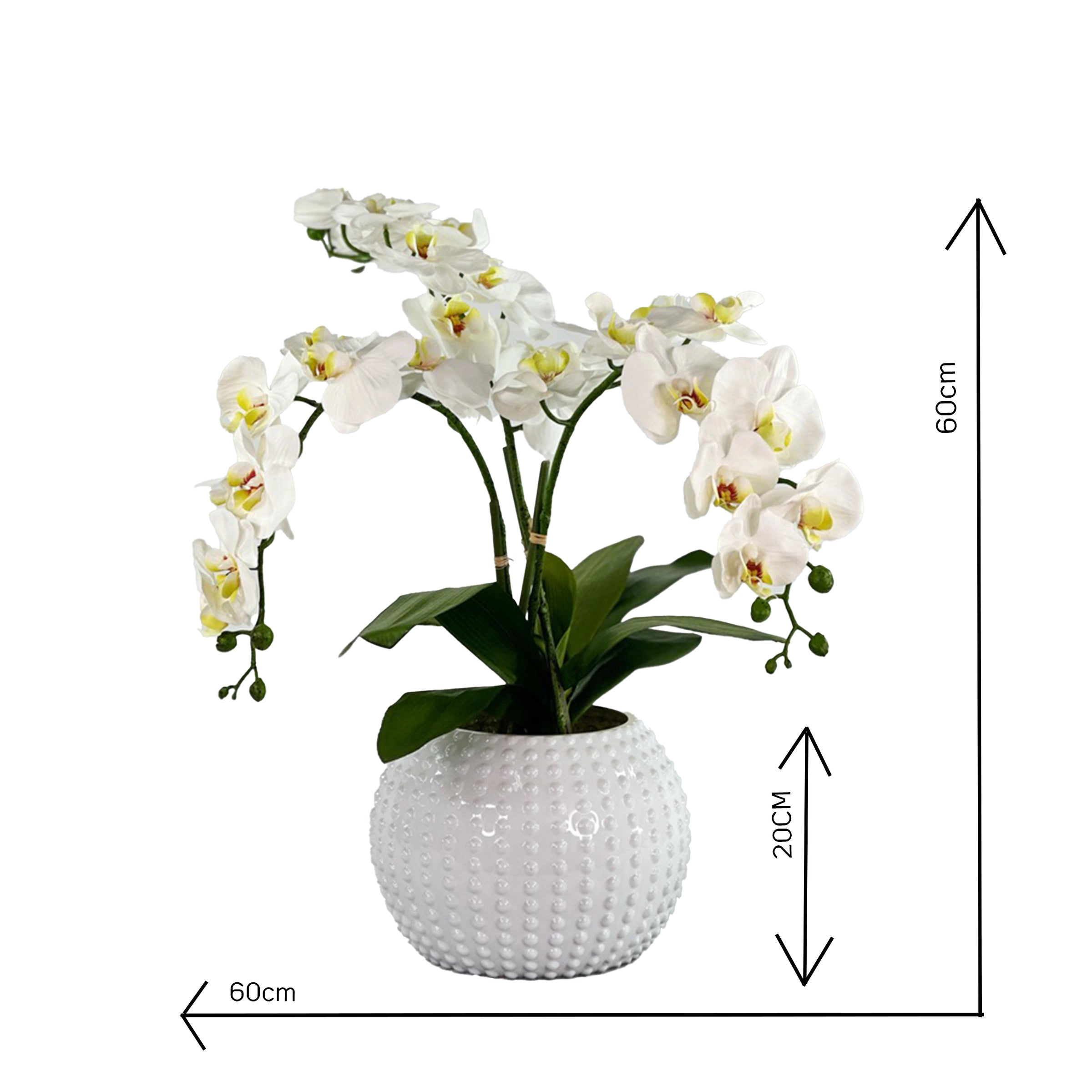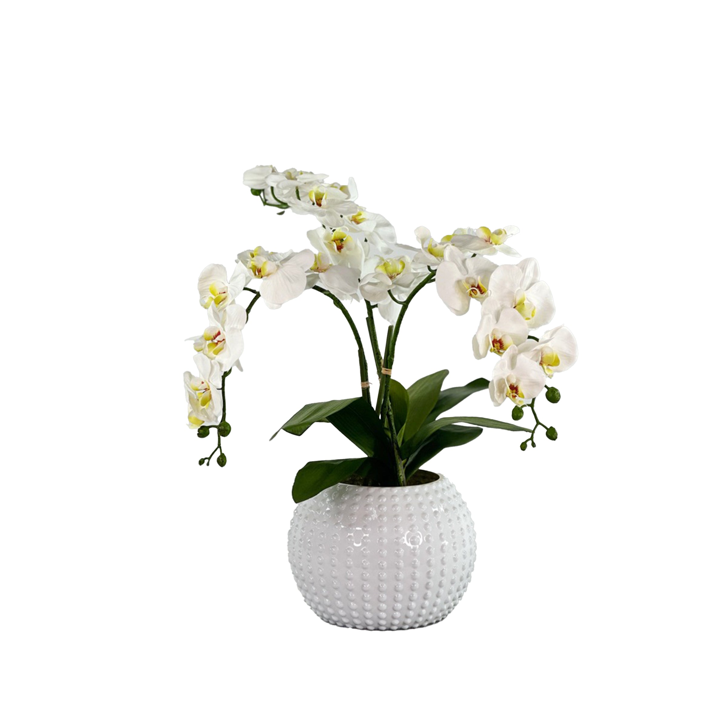 Orchid in White Arrangement in Sea Urchin Ceramic Vase